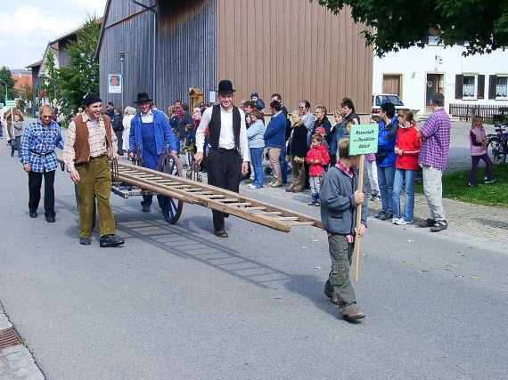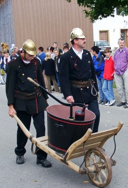 An historischen Geräten kamen Handpumpen, Kübelpumpen, Handspritzen, Saugdruckspritzen, Mannschaftswagen, Requisitenwagen, Motorspritzen, Atemschutzmannschaften, alte Feuerwehrautos und vieles mehr zum Einsatz - bis hin zu den derzeitig in unserer Gemeinde im Einsatz stehenden Fahrzeugen LF 8, TSFW und LF 16.