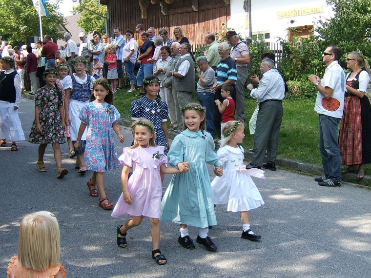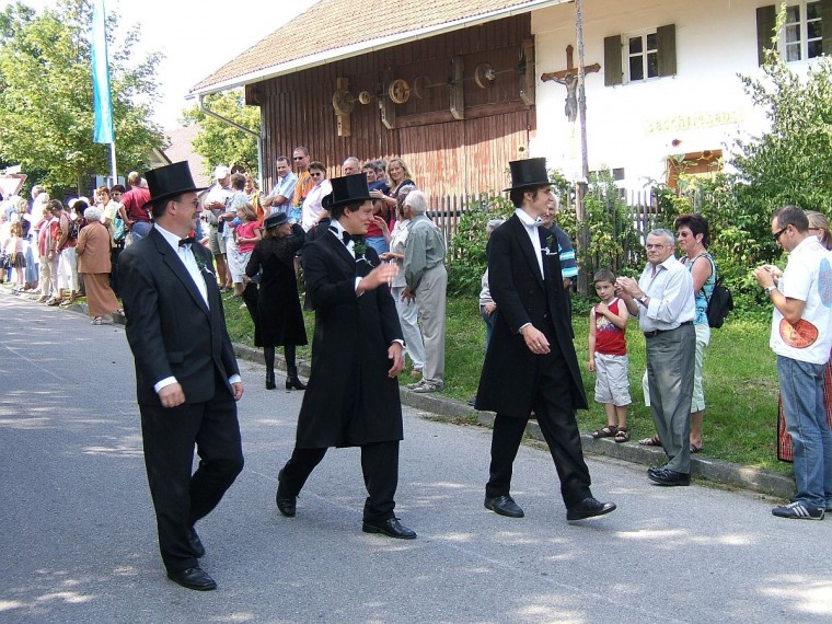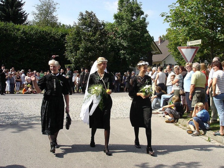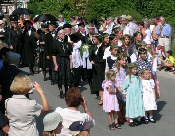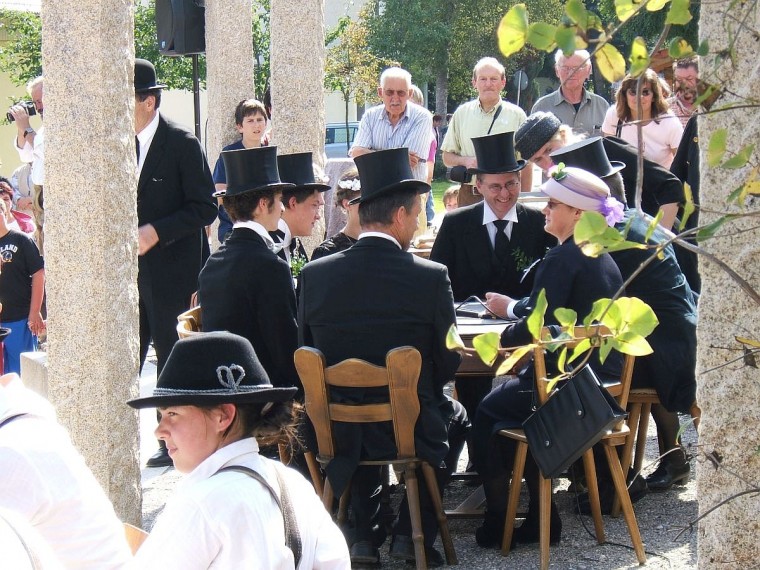 In einem Hochzeitszug wie in der zweiten Hälfte des 19. Jahrhunderts versetzten wir die Besucher in eine Zeit zurück, in der die Braut noch schwarz gekleidet war und die Jünglinge und Jungfrauen getrennt von den Männern und Weibern im Brautzug gingen.