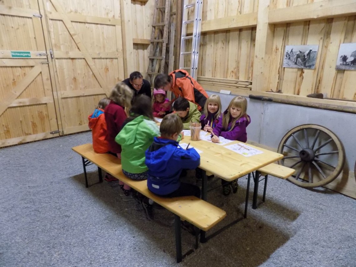 Zwei kleine, frei herumlaufende Schäfchen und große Schafe in einer Koppel begeisterten die Kinder. In der Tenne konnten sie ihre Malkünste beweisen.
