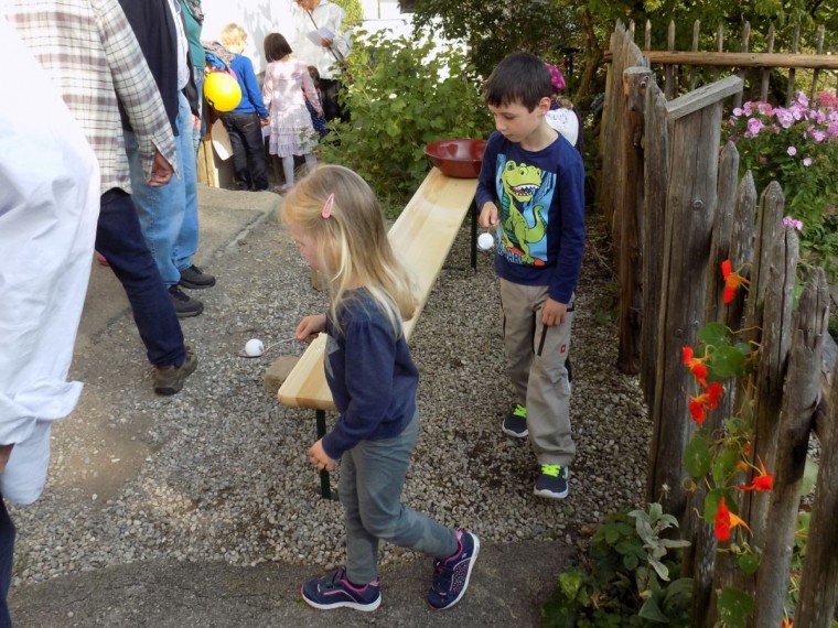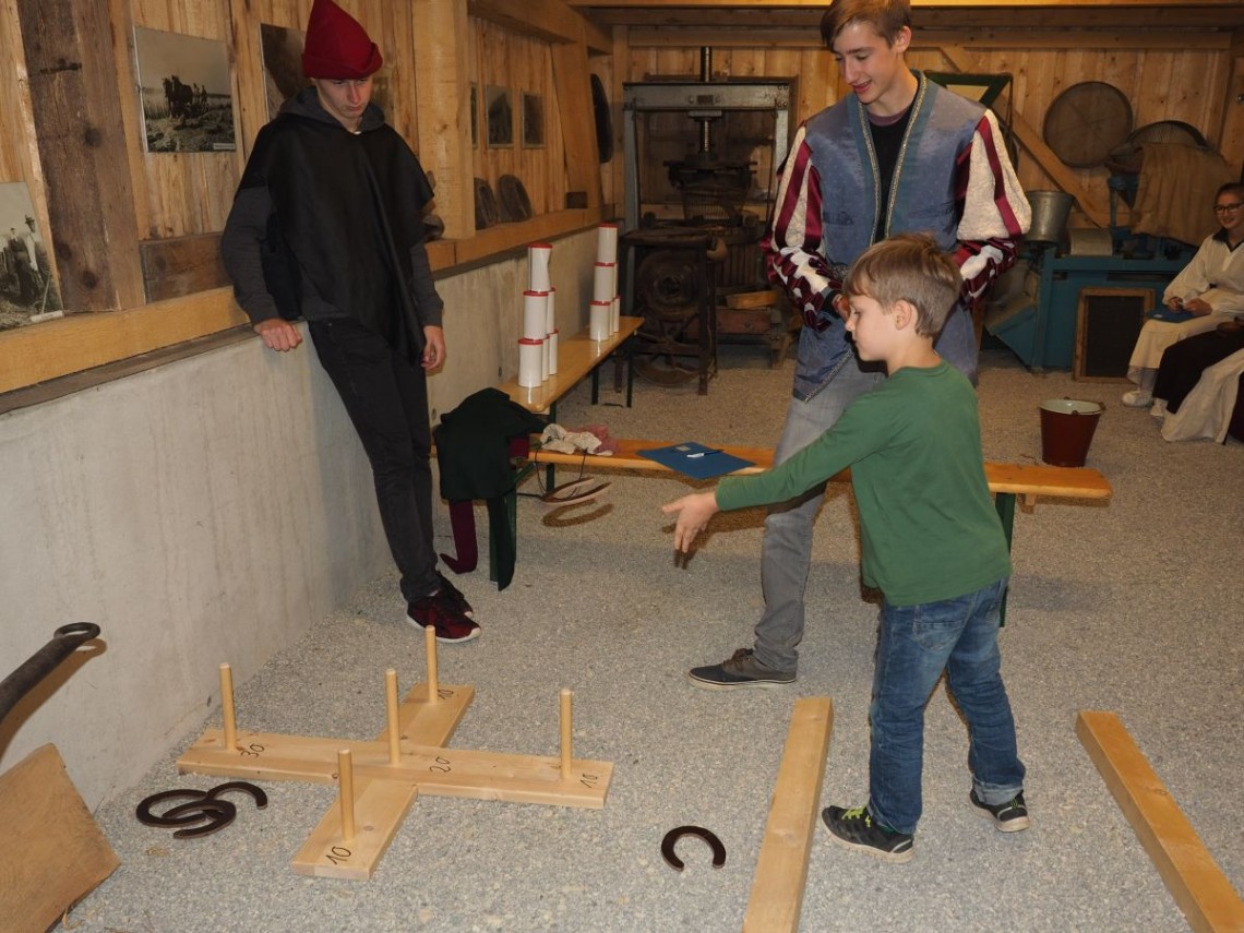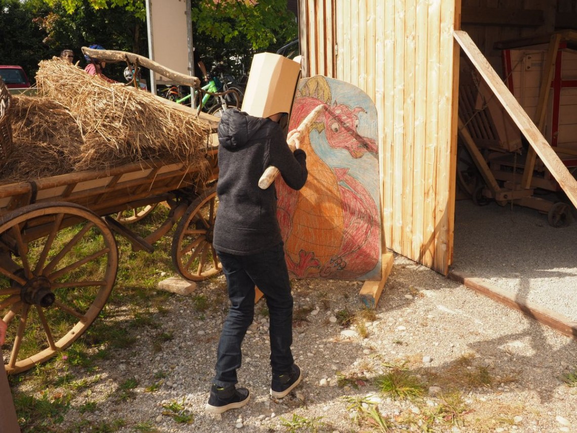 An verschiedenen Spielstationen konnten die Kinder Hufeisen werfen, Ritterschilder basteln, Drachen stechen, malen, Ritterlieder singen, Dosen werfen und vieles mehr. Außerdem konnten sich die Kinder mit mittelalterlichen Gewändern verkleiden und ein Foto gemeinsam mit einem Ritter in seiner Rüstung machen lassen.