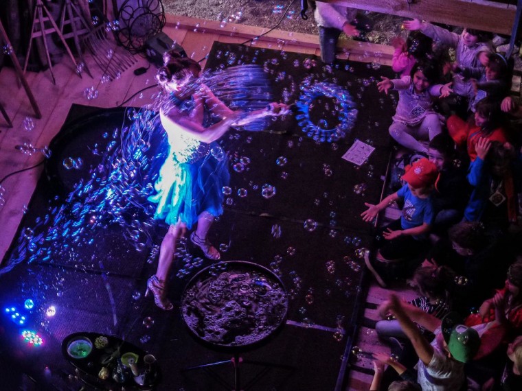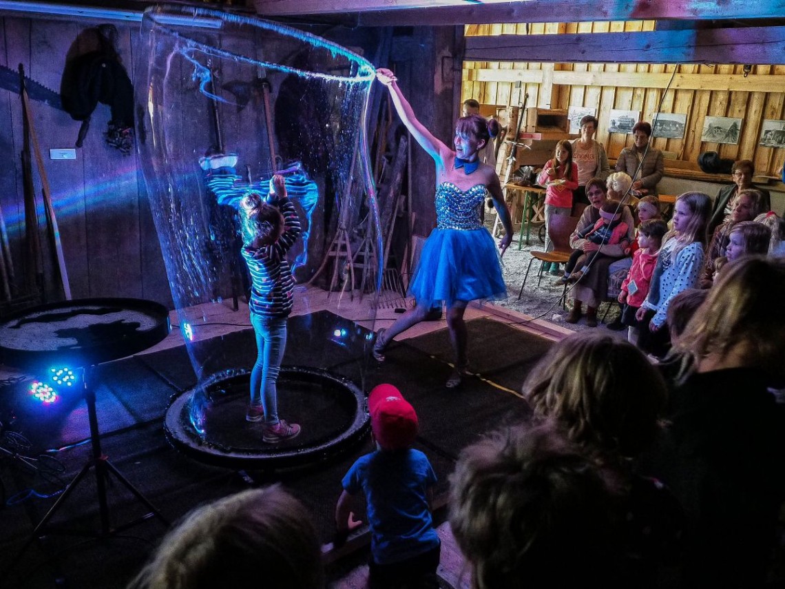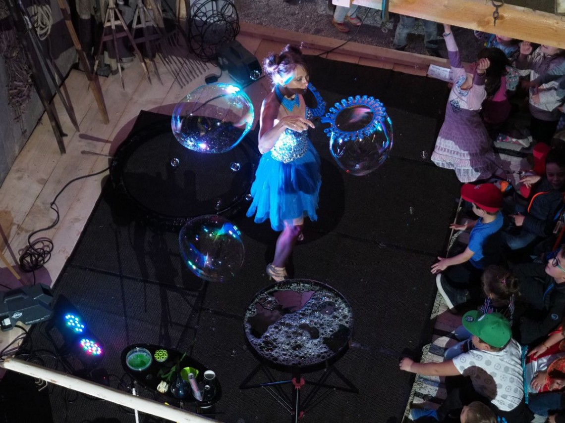 Zum Abschluss zeigte Frau Rinaldi eine Magische Seifenblasen-Show mit riesigen, bis zu 3 m gr0ßen Seifenblasen.
