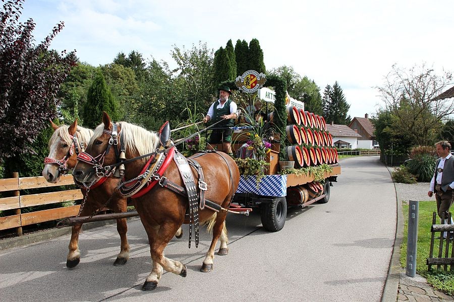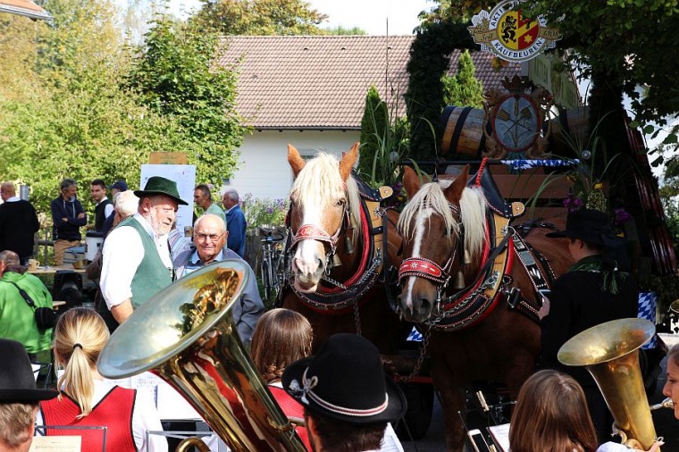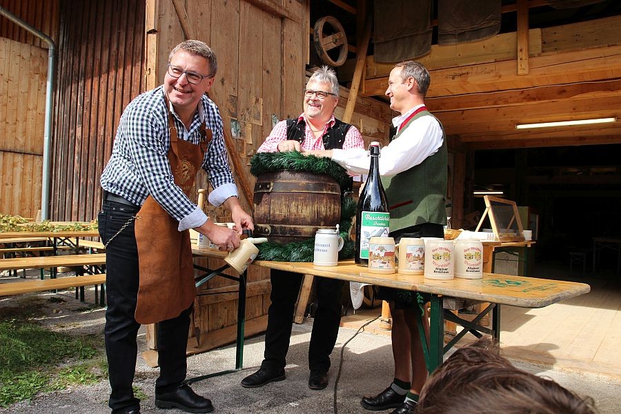 Mit dem von der Musikkapelle Ebenhofen begleiteten Einzug eines Prunk-Brauwagens der Aktienbrauerei wurde der diesjährige Aktionstag des Baschtlehauses eröffnet. Mit einem einzigen Schlag gelang Bürgermeister Wolfgang Eurisch anschließend der Bieranstich.