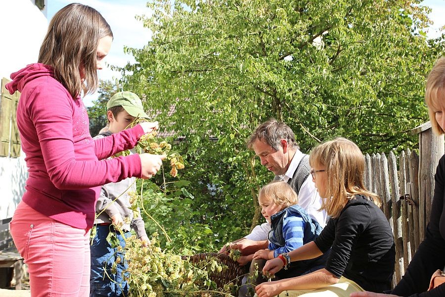 Bei Hopfenzupfen, beim Schaubrauen vor Ort und beim Pichen von Holzfässern konnten sich die Besucher anschaulich über die Tätigkeiten rund um das Bierbrauen informieren.