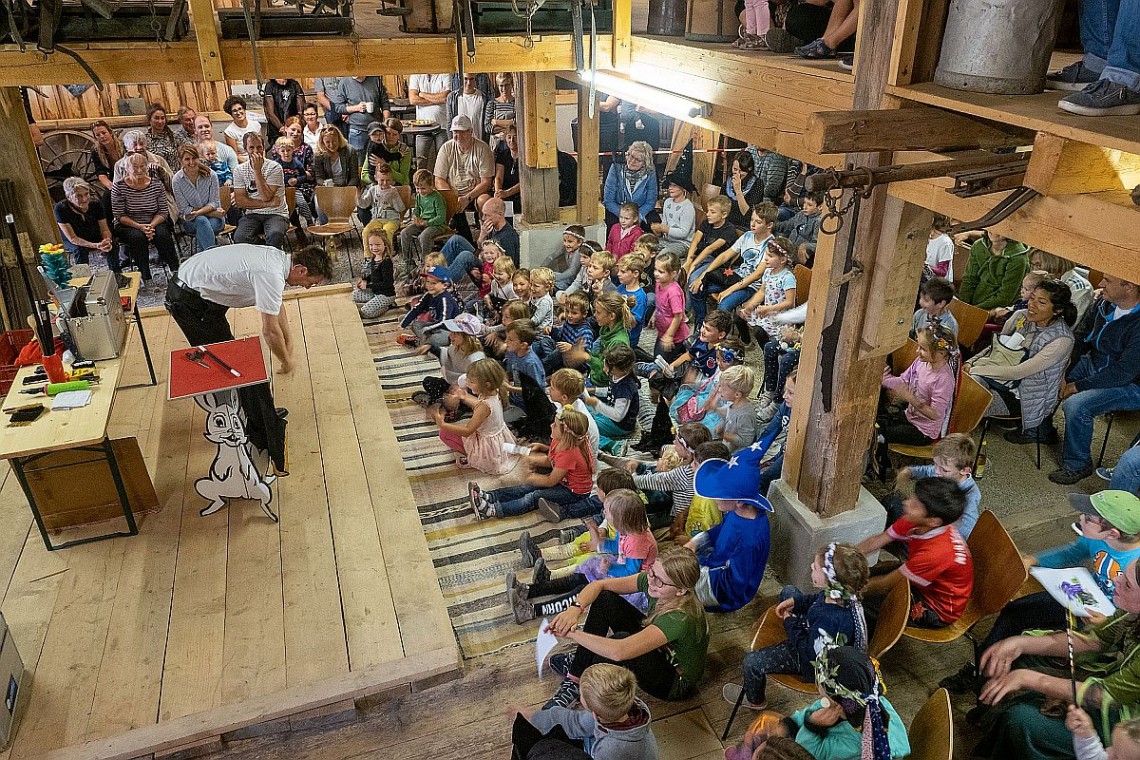 Zum Abschluss zeigte Magic Martin seine faszinierende Zaubershow. Unterstützt von den begeisterten  Kindern mit ihren selbstgebastelten Zauberstäben konnte Magic Martin die tollsten Zauberkunststücke vollbringen. Dabei passierten ihm zur Freude der Kinder immer wieder witzige Missgeschicke.