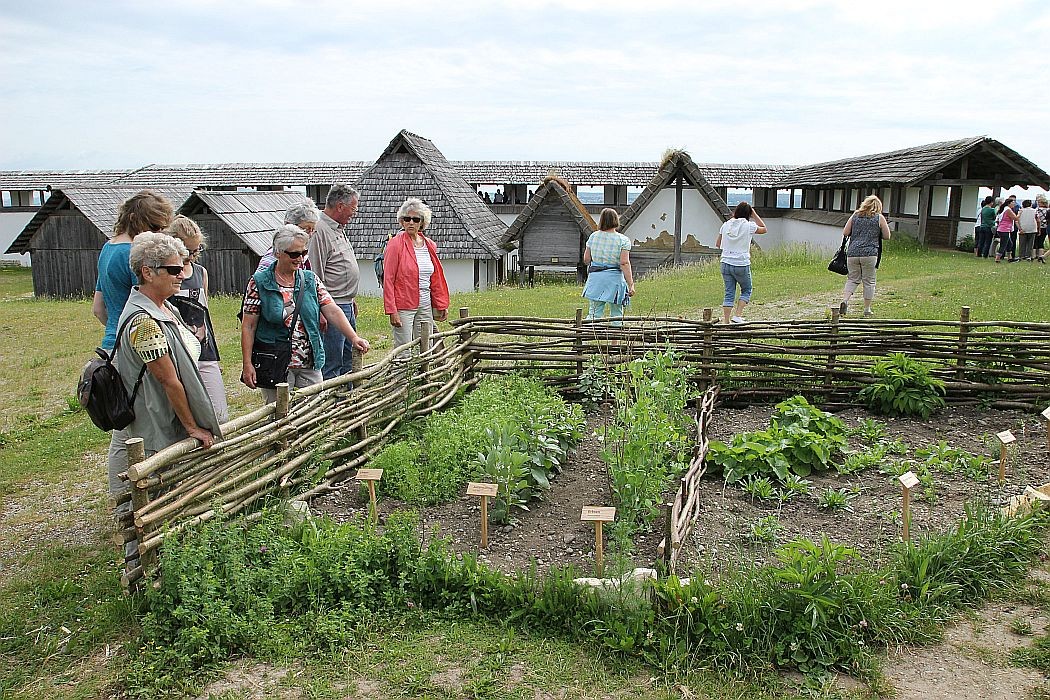 Am Vormittag stand die Heuneburg, die ehemals größte keltische Ansiedlung in Süddeutschland, hoch über der Donau bei Herbertingen gelegen, auf dem Programm. Wir besichtigten die Wehranlage mit ihrer südländischen Lehmziegelmauer und das keltische Herrenhaus. Bei einer Führung durch die zum Teil wiederhergestellte Anlage sowie das dortige Heuneburg-Museum konnten wir in die Lebenswelt der Kelten eintauchen.