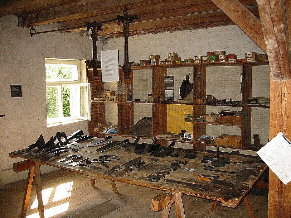 Weiter ging es zum Freilichtmuseum Stoffenried. Hier werden Handwerks- und landwirtschaftliche Geräte, Gegenstände des Brauchtums, Textilien und Hausrat aus der Zeit von 1800 bis 1930 gezeigt, darunter ein kleines landwirtschaftliches Anwesen aus der Zeit um 1880. Zu sehen sind die Stube und Kammern, der Stall und ein Stadel mit landwirtschaftlichen Geräten.