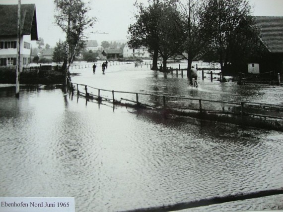 Zu katastrophalen Auswirkungen kam es bei den Hochwassern in den Jahren 1916, 1932, 1965 und beim Jahrhunderthochwasser an Pfingsten 1999. Damals sind wir nur knapp an einem Dammbruch an der Wertach in Ebenhofen südlich des Wehres vorbei gekommen. Nur durch ein schnelles Verstärken des Dammes mit Kiesaufschüttungen konnte Schlimmeres verhindert werden.