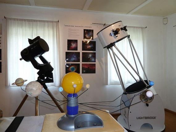 Neben Abbildungen von Nebeln und Galaxien in den unendlichen Tiefen des Universums stellten wir Fernrohre und Teleskope aus, sowie Atlanten mit historischen Sternkarten zur Darstellung der Sternbilder über die letzten 2000 Jahre hinweg.