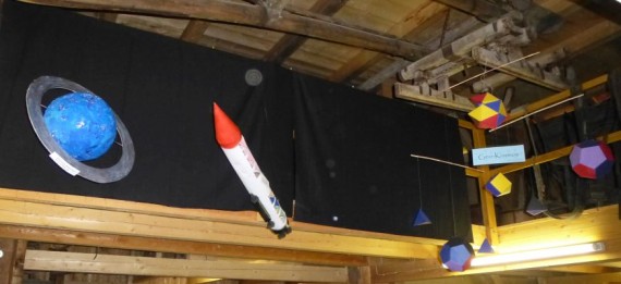 Die Schüler der Grundschule steuerten fantasiereiche Zeichnungen und Modelle über die Erde, die Nachbarplaneten, die Gestirne und die Raumfahrt bei.