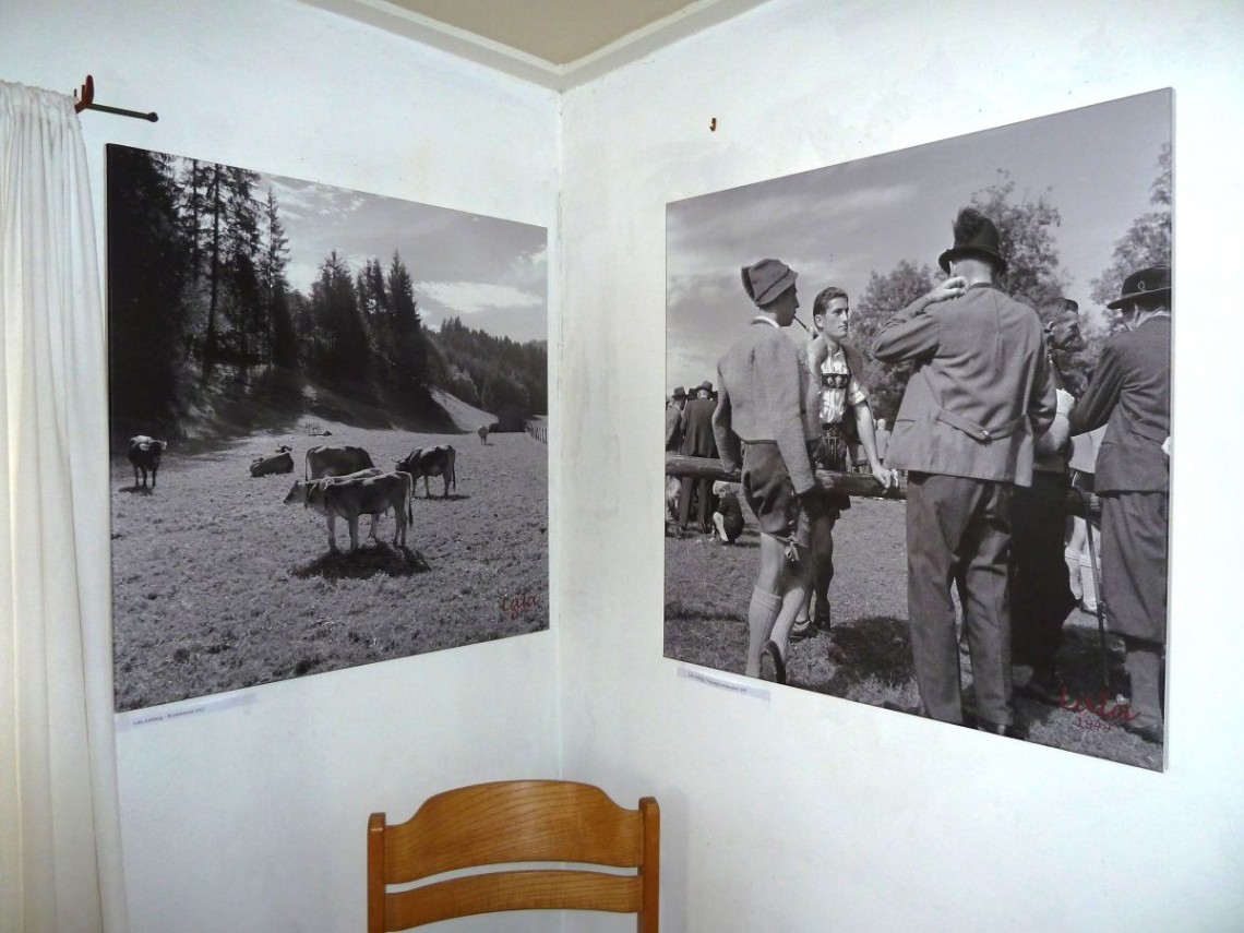 Ihre gestochen scharfen Schwarzweiß-Bilder stellen neben wunderschönen Landschaftsaufnahmen oft auch Alltagsszenen aus dem bäuerlichen Leben dar.