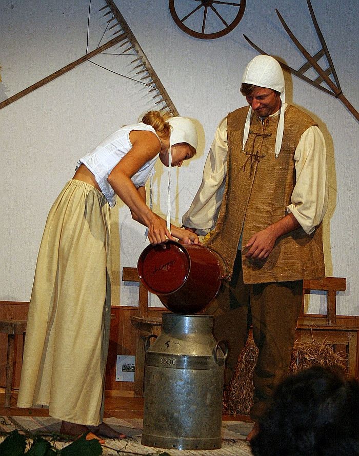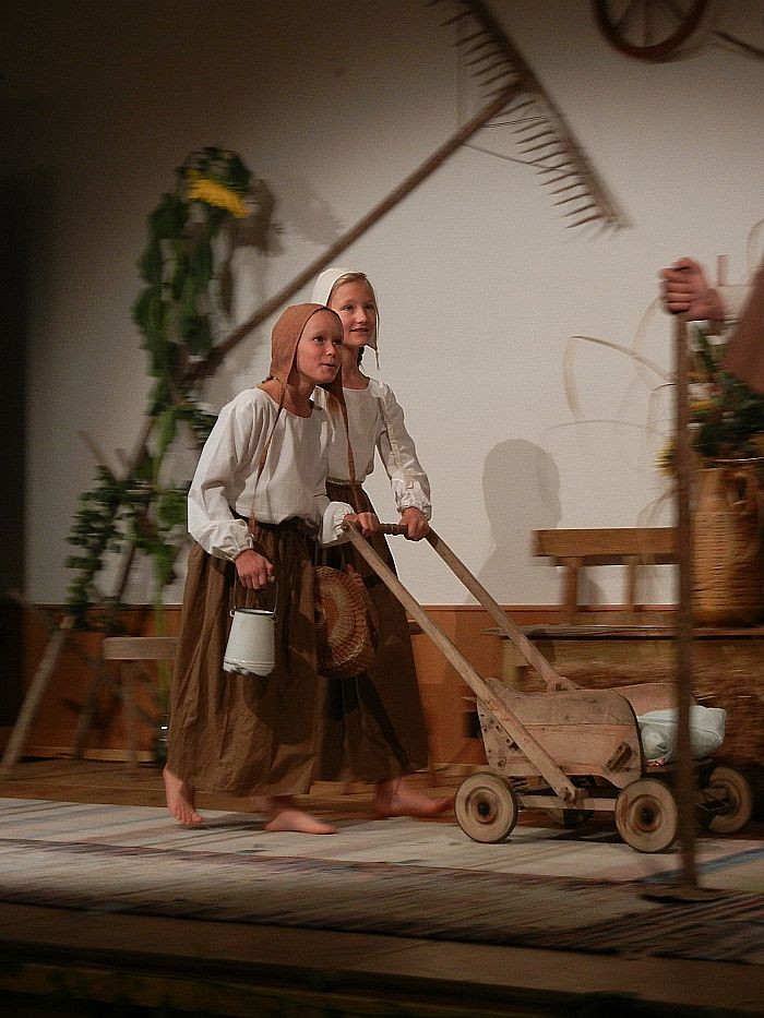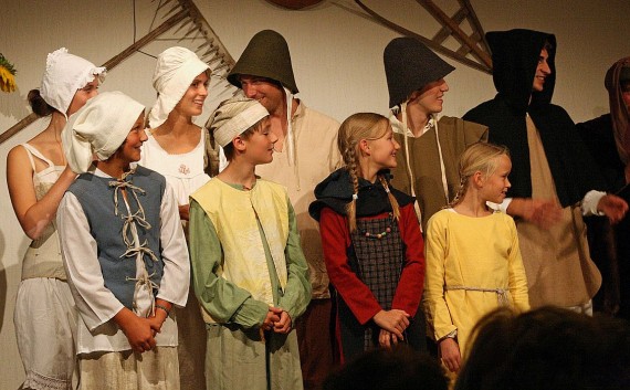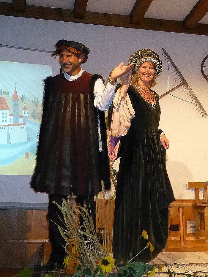 Anhand einer Modenschau wurde die Entwicklung der Ober- und Unterkleidung der ländlichen Bevölkerung vom 12. bis ins 20. Jahrhundert gezeigt und erklärt.