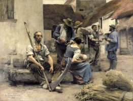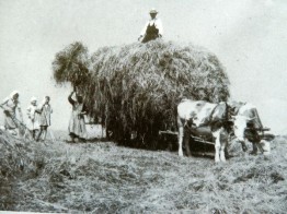(Mit Beginn der Mechanisierung um 1880 wurden durch immer effektiveren Maschineneinsatz die bäuerlichen Hilfskräften entbehrlich, Knechte und Mägde wurden kaum mehr gebraucht.)